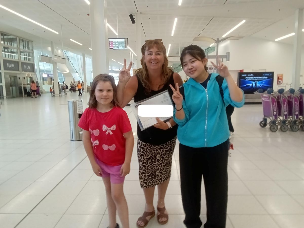 現地の空港では、IESの職員の方々とホストファミリーが温かく出迎えてくださり、生徒たちはそれぞれのステイ先へと向かいました。緊張しながらも、ホストファミリーと笑顔であいさつを交わす姿が印象的でした。