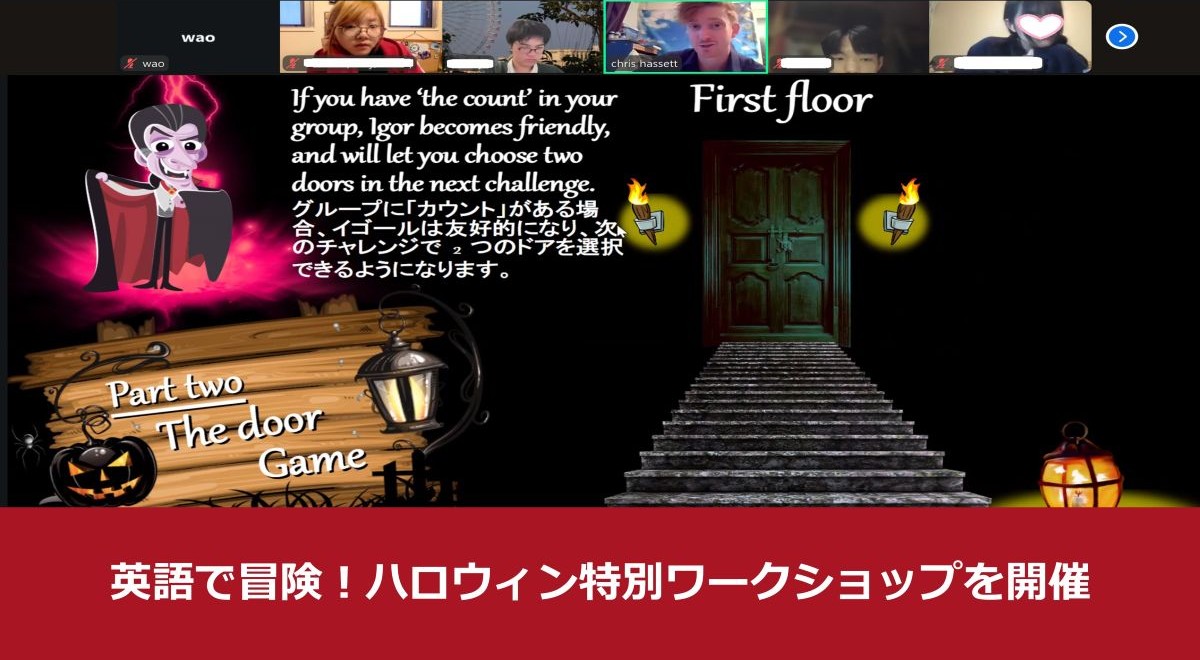 この日のメインは、英語で謎解きをしながら“Haunted Mansion”を冒険するゲーム