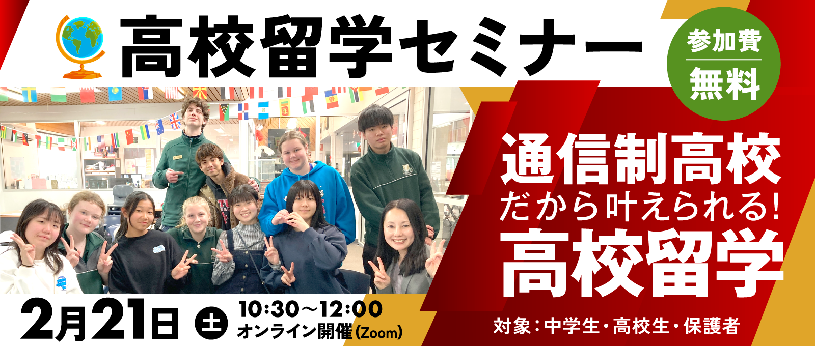 | タイトル | 高校留学セミナー ~通信制高校だから叶えられる!高校留学~ |