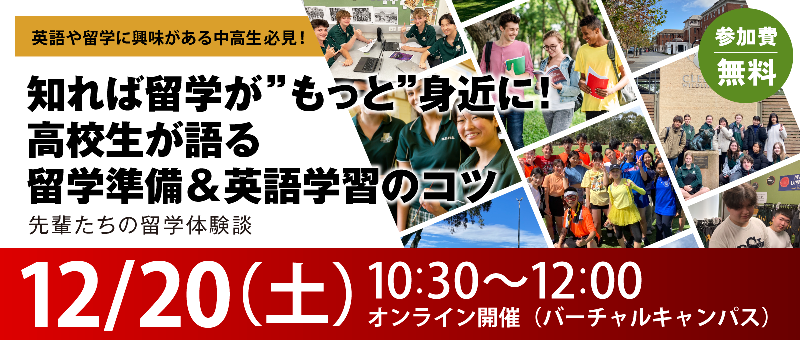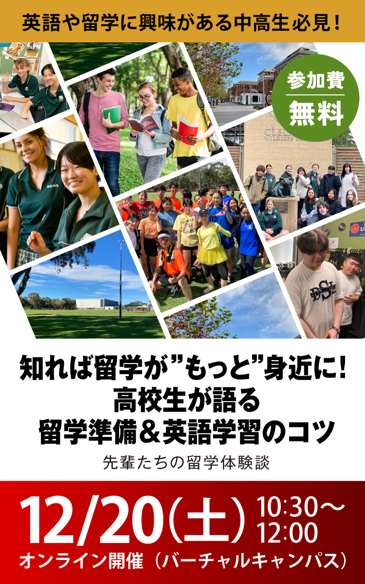 「英語が好きだから、高校では留学してみたい!」とは思っているけれど、実際はどんな感じなのかな、と漠然と不安を抱えている中高生のみなさんはもちろん、保護者の方も必見イベントとなっています。
